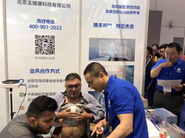2019年5月中旬,中国国际医疗器械药品博览会在上海国家会展中心开幕,在这次医疗行业盛会之中,北京五维康“飞碟心电仪”可谓抓足了眼球,国内外的参观者和同仁纷纷驻足体验,五维康获得国家发明专利的独门黑科技“十二导一体化电极”成为了万众瞩目的焦点!正是这种十二导一体化电极,不仅保障了测量心电图的准确性和筛查病种的全面性,也解决了普通人不会操作、一个人无法完成操作心电图的难题。“易、准、快”成为五维康飞碟心电仪的突出特点,特别适用于在家庭中,或旅行中携带,随时随地监测心脏情况。