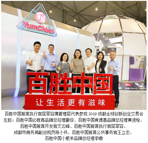 6月10日,2019成都全球创新创业交易会(以下简称“创交会”)在成都拉开帷幕,应成都市政府的邀请,百胜中国控股有限公司(以下简称“百胜中国”)作为餐饮行业的创新先锋,惊艳亮相此次创交会。