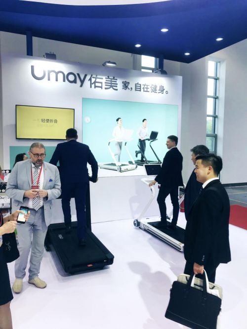 本届博览会以消费品博览为导向,旨在向大众传播健康的消费理念和生活态度。随着我国社会经济的高速发展,人口老龄化、城镇化进程的加快,倡导健康的消费理念和健康的生活态度已经成为当下热门的生活方式。自然,智能健身、科技生活作为日常消费环节中的重要部分,同时智能科技+运动健身服务的有机结合在这波“健康大作战”中成为必然趋势。Umay佑美作为健康消费频道的主打品牌,在本次博览会上一经亮相便获得众多采购单位的青睐。