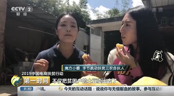 曾经贫困地区因为交通不便、信息闭塞等原因,一度面临山中好货无销路的困境。如今,通过短视频再偏远地区的农产品,都能被外界看到。6月13日,字节跳动扶贫三农合伙人应央视财经邀请,参与了“2019中国电商扶贫行动”网络直播活动,帮助国家级贫困县云南会泽推广粉皮土豆。