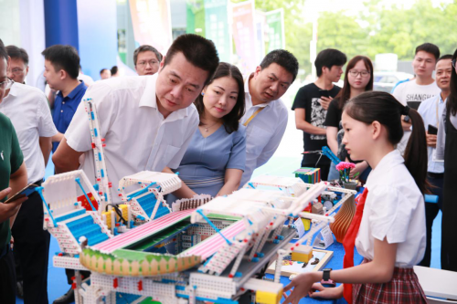 当然,展览现场当属青少年科技创新教育展区最为吸睛。现场青少年创客是各有看家本领,有智能体育馆、喷气滑板、防扰民智能广场舞娱乐音响、自动分类垃圾桶、彩色路障灯、学生升旗防尴尬器、单片机教学套件、汽车远近光灯自动控制装置、智能风速控制开关、湿度控制智能喷晒系统、基于深度学习的人脸识别及教育的人行信号灯等等大开脑洞的科技创新成果。不难发现,这些创新的由来是青少年创客们对日常生活中的所见所闻所触进行创意延伸及创新,结合实践能力转化为更具有创意的产品。整个展区呈现出小小创客家蕴含大智慧,大胆创造新创意的活力。