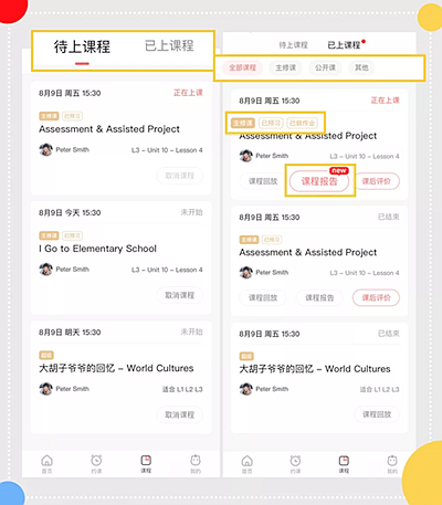 为更好地辅导孩子学习,家长最重要的“工作”之一就是要为孩子制定良好的学习计划,并及时跟进孩子学习进度。因此,gogokid在本次家长端APP升级中,打造了全新的【课程】模块,同时对【约课】模块进行了重点优化,以帮助家长随时随地掌握孩子学习情况,从而适时地安排课程、预约外教,保证孩子拥有长期稳定的英语学习。