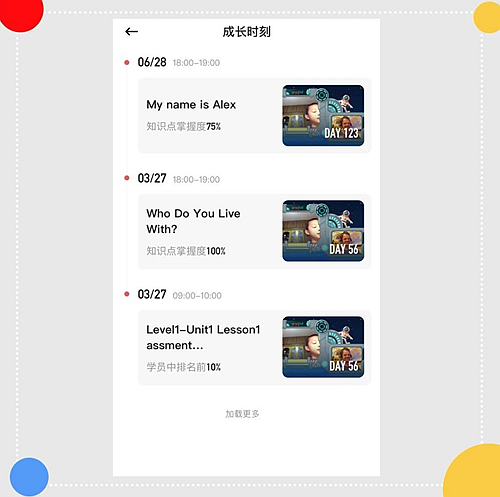 【成长时刻】是小学员每堂课的综合课程报告,包含学员在课堂上的知识点掌握情况、外教老师对学员的课堂评语以及课程中的精彩片段视频,例如与外教老师的精彩互动或是小学员在课堂踊跃表现等内容。【成长时刻】可以清晰地呈现孩子对知识点的掌握情况,而透过精彩片段视频,家长可以查看孩子英语学习的点滴进步,更能够将孩子成长中的美好记忆“珍藏”起来,见证孩子的成长历程。