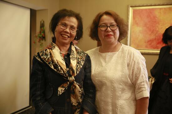 课程环节中,讲师不仅通过PPT给大家展示许多服装搭配技巧、丝巾佩戴方法,还现场实操这些配搭的方法。邀请在场母女档组合—女儿为妈妈佩戴丝巾,这是一种情感的回应,爱的传递。