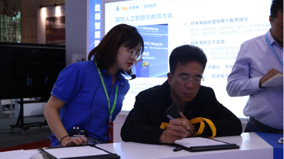 基于对教学过程的充分理解,对人工智能技术的应用,好未来智慧教育自主研发的轻型智慧课堂产品“纸笔互动课堂”打开了传统课堂教学的“黑盒子”,让课堂数据透明化,真正实现 “大规模因材施教”, 引起了会场媒体、参展观众的广泛关注。