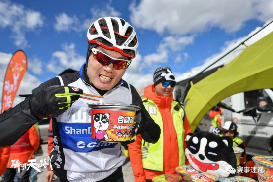如果在茫茫的雪山高原,能吃上一碗热乎乎的美味饭菜,那该是多么好的体验?此次比赛,自嗨锅就成为沿途一道“靓丽的风景线”,当骑手们每经过一段路程,又累又困,饥寒交迫时,只需到达补给站,立即就能来一桶火锅、面食暖胃。因此,无论沿途是在寒冷的高原,还是美丽的平川,只需“一瓶矿泉水”就能端来一份冒着热气的美味自嗨锅,这也成了此次比赛的亮点。