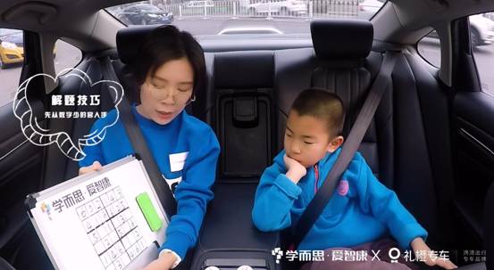 本次活动,爱智康还联合了滴滴出行专车品牌“礼橙专车”,携手原中国国家数独队队长陈岑,打造“数独移动城堡”,将学习场景搬到了礼橙专车里,在宽敞舒适的礼橙专车后排,悉心帮助孩子利用碎片化时间培养记忆力和逻辑力,学习数独秘籍。