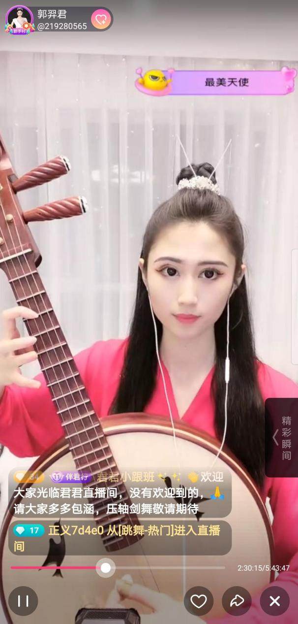 在总决赛中,每一位与郭羿君PK的主播都惊呼“遇到了'传说中的郭羿君'”。从直播类型来看,郭羿君称得上是一位“古典女神”。对于古典文化的传播,郭羿君并不是嘴上说说而已,琵琶、中阮,还有几近失传的箜篌,在她手中都能演奏出百转千回的动人乐曲。最后的冠亚季军争夺战中,一曲《火把节之夜》瞬间让人置身草原篝火旁。