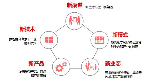 展开来看,五新即新技术、新产品、新业态、新模式、新渠道,五新生态涵盖技术创新、产品能力以及产业落地三个维度,以新一代技术广泛深化应用为基础,以体验升级为导向,以五新为内核并互相融合的新生态,这五新所指征的新趋势将催生产业生态发生变革与发展,重塑产业格局,丰富服务内涵。