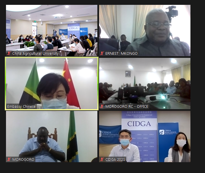 2021年1月13日,在我国驻坦桑尼亚大使馆的支持下,在国务委员兼外长王毅访非五国行、《新时代的中国国际发展合作》白皮书发布之际,坦桑尼亚省委省政府、中国农业大学、坦桑尼亚苏科因农业大学共同举办了中坦合作“小技术大丰收”玉米增产项目的线上交流会。交流会旨在进一步深化双边合作,奖励在本项目中扎根基层、服务非洲农民、提高当地民生的10名最佳农业推广员。本次交流会在中国农业大学国际发展与全球农业学院举办,我国驻坦桑尼亚大使王克、中国农业大学领导、坦桑尼亚莫罗戈罗省省委书记及相关领导、坦桑尼亚苏科因农业大学校领导、坦桑尼亚农业科技推广人员,以及中国农业大学师生等出席了此会。