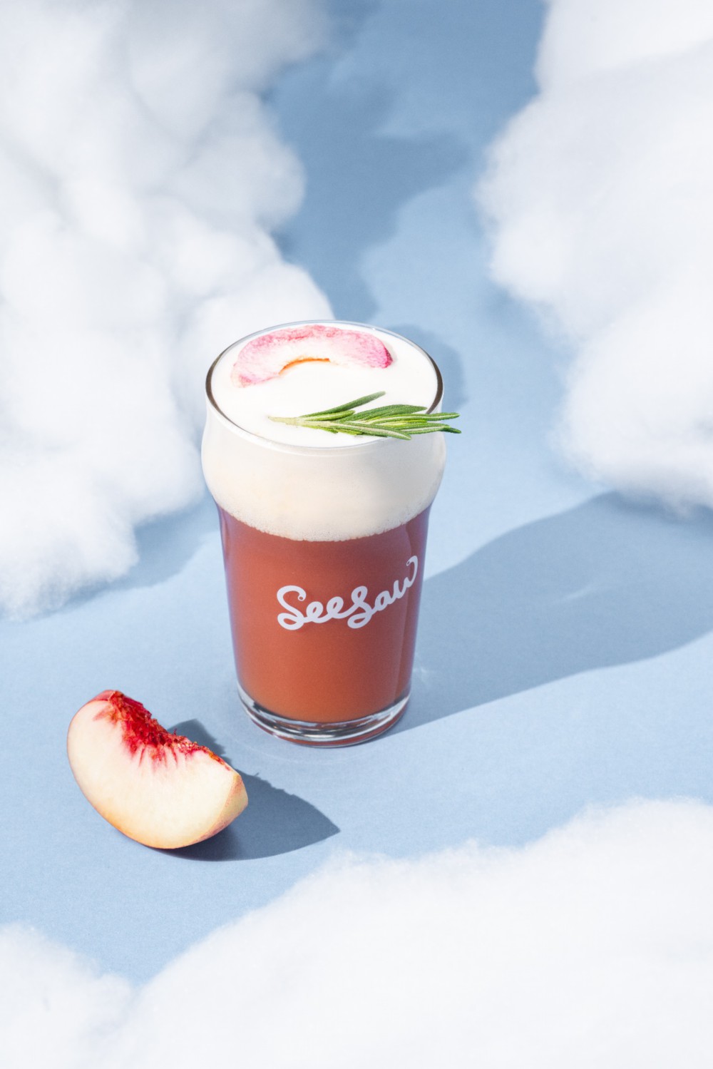 其中最畅销的春季创意咖啡之一“云朵桃桃冷萃”,采用了由Seesaw内部专设的创意咖啡Lab团队首创研发的植物基燕麦奶盖。运用特殊的打发技术,0糖0添加,将燕麦奶处理成轻盈奶泡,喝起来有着如啤酒花般绵密丰富口感。与市场上其他一些饮品奶盖不同,Seesaw首创的燕麦奶奶盖仅仅使用了燕麦奶一种成分,没有任何糖浆或塑形成分的添加。这也是在经历了长时间研发尝试后,Seesaw创意咖啡Lab团队探索出的最适合咖啡的奶盖搭配。