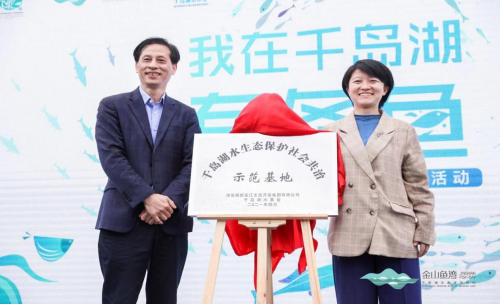 活动中,千岛湖水基金与金山鱼湾(淳安县新安江生态开发集团)共同举行了合作基地的揭牌仪式,向护水志愿者授旗,并为公益项目伙伴颁发证书。