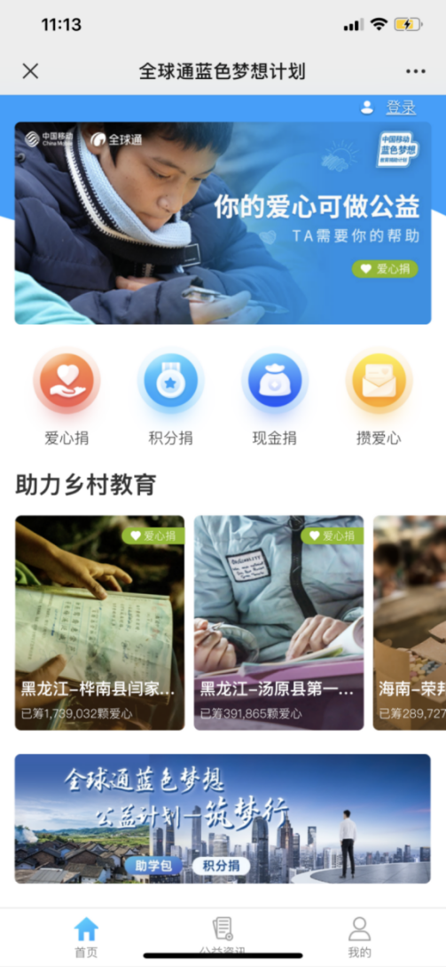“你行动 我来捐”作为“全球通蓝色梦想公益计划”的核心理念。即日起,大家可登录中国移动APP进入全球通蓝色梦想公益专区,通过捐出爱心捐、积分捐和现金捐的形式,让爱从指间起飞,跨越山海,为偏远地区的孩子们送去沉甸甸的关爱。