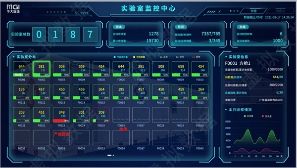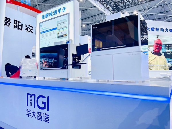数博会上,华大智造展出了一站式核酸检测平台与基因测序平台,通过ZLIMS实验室信息系统连接,实现全自动化样本条码扫描、录入和分装程序,自动化提取核酸,帮助检测机构对病毒进行全面的分类鉴定、提供完整的病毒基因序列信息等流程,同时还可以实时监测所有仪器运行状态以及实验的全流程。