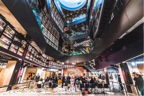 丝路国际智慧港近4万平方米的城市文化商业空间蓝海风漫巷也是致力于推动多元文化传播与交流的重要支点。蓝海风漫巷融合了文化艺术、体验、社交、娱乐、场景消费等多重功能,将根植于西安的丝路元素巧妙地融于现代都市生活,打造集文化、阅读、休闲、社交等功能为一体的沉浸式文化艺术社交空间。长240米、高18米的书墙“丝路书香”贯穿整个空间,藏书量超过35万册。整个书墙的书籍种类高达数十万种,堪比一座小型图书馆。蓝海风漫巷每年举办超过200场形式多样的文化主题活动,如图书签售、文化沙龙、读者见面会、文化大讲堂、“一带一路”主题展、各类美学展览,以及音乐类、表演类的文化演出。将举办“一带一路”国际品牌展、丝路国际品牌城市展等,集中展示丝路沿线国家和地区的多元文化以及共建“一带一路”壮丽图景下的文化交融、民心相通。