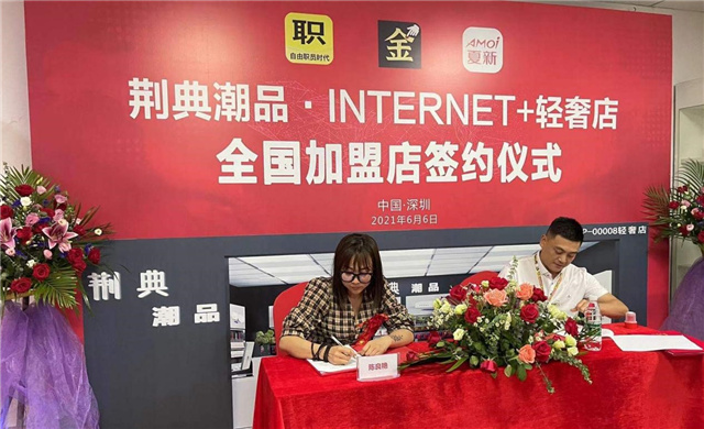 签约仪式上双方郑重签订了荆典潮品·Internet+轻奢店加盟合作仪式,这是双方合作共赢新的起点。同时双方就品牌服务与门店发展做出了积极的探讨,并达成深度合作共识,携手同行,共创荆典潮品·Internet+品牌连锁店的美好未来。
