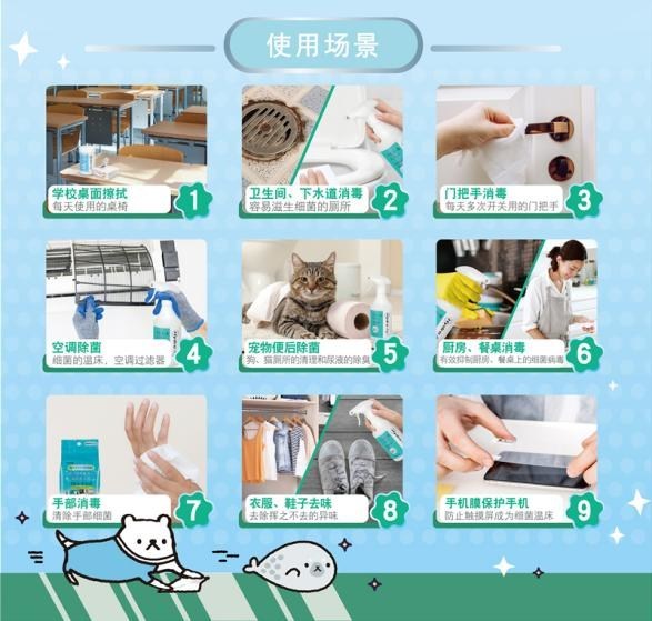 其实日常生活中的每个不经意的角落都有着交叉感染的隐患。各种过敏症状有可能就是因家中角落不可见的细小霉菌、细菌、真菌的滋生而引起的。FUJIFILM 消毒喷雾和湿巾除了可用于有效防疫、清洁常用物品表面和手之外,高安全性的消毒产品拥有更多样的应用场景:FUJIFILM 消毒喷雾喷洒于有霉菌角落,如窗帘、空调出风口、鞋子内等,可长效抑制霉菌真菌的繁殖,从根源上减少过敏源的产生,有效去除霉味和鞋臭味;FUJIFILM 卫生湿巾擦拭餐桌桌面、门把手、儿童玩具等表面,可以达到长时间持续抗菌的效果,即使工作忙碌的妈妈们也能简单做到,减少家庭内交叉感染的风险;还可以用于清洁外出过的宠物脚掌,寝具及厕所,有效抑制各种细菌的滋生防止异味。