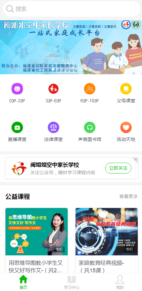 闽姐姐空中家长学校的“后浪云课堂”,涵盖0-18岁各个阶段家庭教育精品课程,共享优质的家庭教育资源。在这里,家长和孩子们可以学习到各种各样的免费课程,从孩子自身学习能力的提升锻炼到家长们的教育要点,都可以在云课堂中看到。