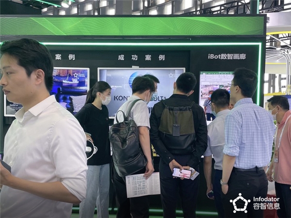 生动翔实的场景视频不仅展示出容智信息在赋能企业数字化、智能化转型升级进程中能够提供的强大支撑力,也吸引了众多对数字化转型感兴趣的观众,展会现场,容智的销售工程师对观众提出的技术、产品、解决方案等问题进行了详细解答,并为客户提供相应的整合服务方案。
