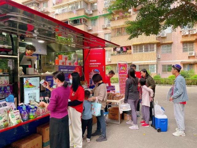 活动开始后,社区居民纷纷品尝现场美食,并挑选自己心仪的产品。对新疆产品给予了很高评价,尤其是新疆阿克苏冰糖心苹果、库尔勒香梨、纯牛奶、馕、烤包子等,新疆的阿克苏苹果果面光滑细腻、色泽光亮自然,皮薄肉厚、质地较密、味甜汁多,还有漂亮的糖心。活动当天,还为居民开启”预购通道“。