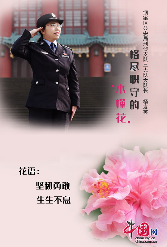 铜梁区公安局刑侦支队三大队大队长 杨发英:“英英木槿花,振振蜉蝣羽。”踏实肯干、开拓进取是对她工作最好的诠释,入警18年的杨发英,面对突发案件总是冲锋在勘验一线,用自己的细腻和睿智破解了一起起疑难案件,她以巾帼不让须眉的豪气和持之以恒的努力,以实际行动践行“为死者言,为生者权”的神圣使命。