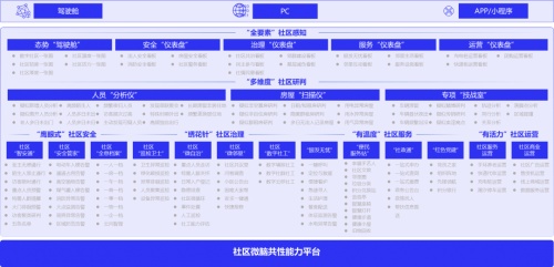 1个社区微脑共性能力平台。包括社区物联接入平台、社区视频融合平台、社区智能引擎、社区数据金库和社区管理能力平台,为社区微脑业务的实现提供“数+智”的技术支撑,赋能社区场景应用。